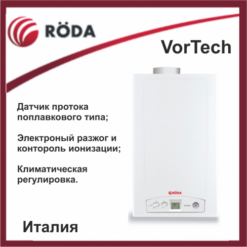 Що може бути кращим для домашнього автономного опалення, ніж німецька якість? Компанія Рода із Німеччини спеціалізується на виробництві високоякісних елементів для автономного опалення. У їхньому арсеналі величезний каталог, товари з якого користуються великою популярністю у всьому світі. Газовий котел roda vortech cs 24 r - це відмінне рішення як для малогабаритних, так і для великих квартир і приміщень. Його виробництво знаходиться в Італії, де впроваджено найпередовіші технології та виробничі потужності. Завдяки цьому, цей котел вдалося зробити максимально енергоефективним, потужним та економічним. Roda vortech cs 24 r  – це • Сучасний дизайн