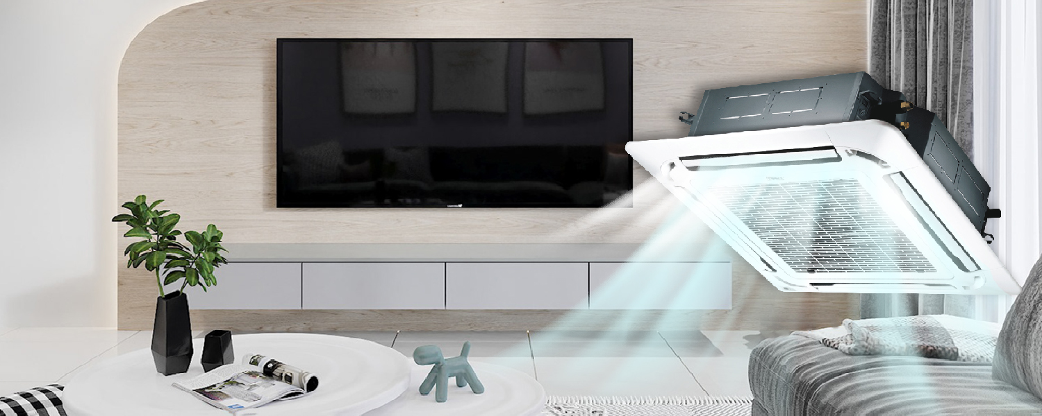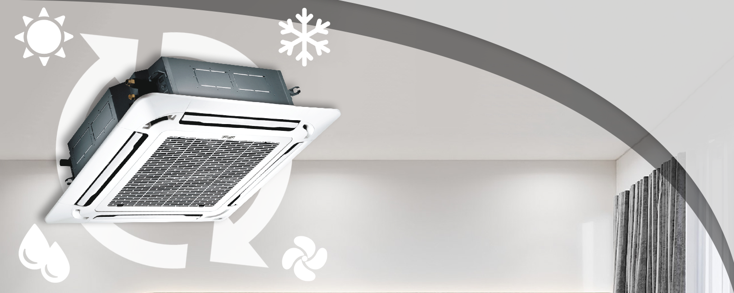 Напівпромисловий кондиціонер касетного типу — інверторна система, яка закриває базові потреби кондиціювання. Складається із зовнішнього блоку та внутрішніх, що мають квадратну форму, компактний розмір та покриття білим кольором.