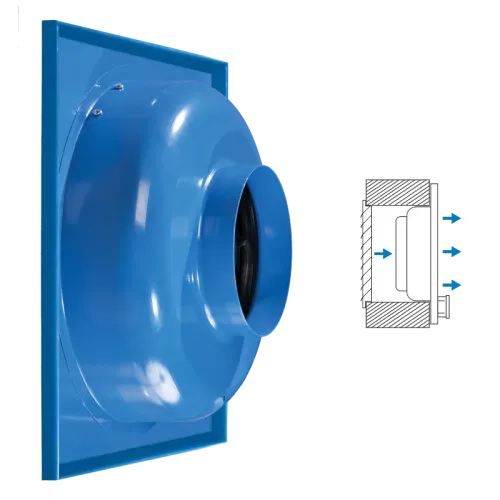 Корпус вентилятора виготовлений зі сталі з полімерним покриттям. Можливі різні варіанти виконання вентиляторів для настінного або внутрішнього монтажу.