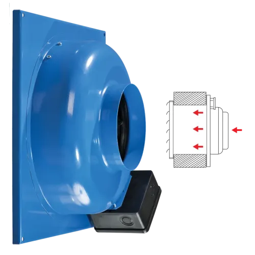 Корпус вентилятора виготовлений зі сталі з полімерним покриттям. Можливі різні варіанти виконання вентиляторів для настінного або внутрішнього монтажу.