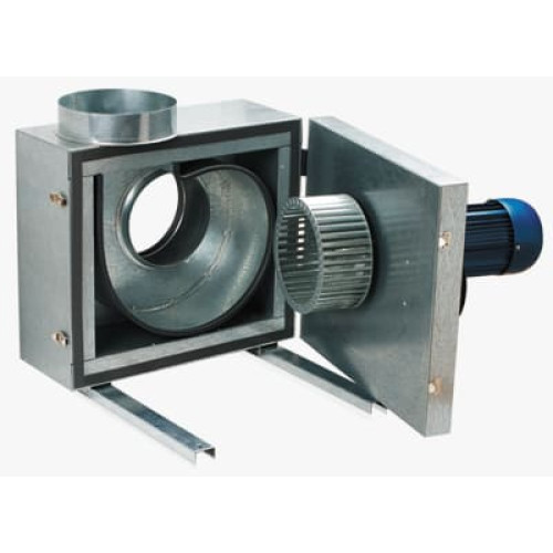 Для ізоляції від шуму і втрат тепла корпус вентилятора виконаний з оцинкованої сталі з використанням мінеральної вати завтовшки 50 мм. Для зручності сервісного обслуговування і миття вентилятора блок двигун-крильчатка відкривається на шарнірах.