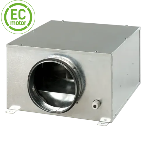 Шумоізольований вентилятор Вентс КСБ 125 ЕС з максимальною продуктивністю 357 м3/год призначений для переміщення повітря в системах припливної або витяжної вентиляції. Обладнаний ЕС-двигуном, що дозволяє точно регулювати продуктивність зовнішнім регулятором або контролером. Діаметр підключення до повітроводів 125 мм.